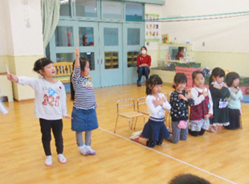 11月に入ると、年長クラスでは「イエス様のお誕生を皆で思い出し、聖劇でお祝いしよう」という話し合いをします。そこから約1カ月かけて聖劇の練習をします。