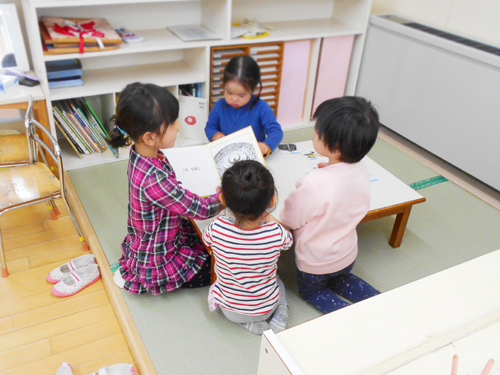お茶をこぼしてしまった時には「手伝ってあげる!」とたくさんの子ども達が駆けつけて、一緒に床や机を拭いてくれます。なかには、まるで担任の先生の様に上手に物事を教えてくれる人もいます。私たち担任もそんな姿から学ばせてもらう事もあるほど、子ども達は子ども同士のことをとっても良く理解しているようです。