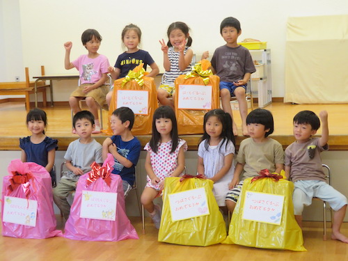 夕涼み会では、皆で食べる夕食のメニューを、お集まりの時間に子ども達で話し合って決めます。スイカ割り、花火、キャンプファイヤー、歌と踊り、宝探しなども行います。